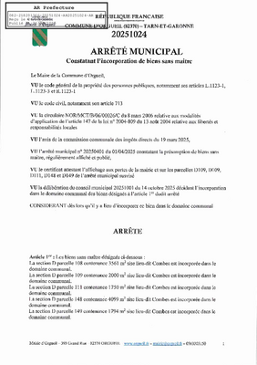 Publication Arrêté constatant l'incorporation de biens sans maitre dans le domaine communal
